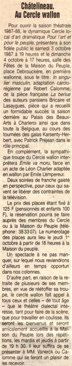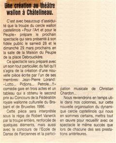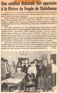 Mon rêve étant ado était d'être un artiste, je suis allé au solfège j'ai appris le piano, le saxo, mais j'aurai voulu faire du cinéma du théâtre, les possibilités dans ce domaine à l'époque était mince en Belgique. Un jour un client monsieur Robert Vanerck pour ne pas le cité étant régisseur au cercle (Pour l'Art et pour le Peuple) de Châtelineau m'a proposé de rejoindre sa troupe de théâtre wallon, j'ai commencé à jouer dans quelques pièces et très vite j'ai commencé à écrire des pièces. La toute première (Paulin èyèt ses gniêrs) eu un tel succès que la RTBF en a fait une captation. Je dois remercier aussi monsieur Emile Lempereur qui m'encouragea dans mon désir d'écrire, et André Gevret réalisateur qui a cru en moi. Je vous propose ici la liste de mes pièces en français, en wallon carolo, en différent dialecte de nos régions,  en néerlandais et anglais pour certaines. ( Attention, ils sont tous en version pdf )