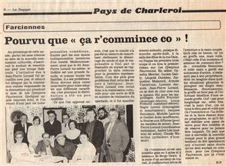 Mon rêve étant ado était d'être un artiste, je suis allé au solfège j'ai appris le piano, le saxo, mais j'aurai voulu faire du cinéma du théâtre, les possibilités dans ce domaine à l'époque était mince en Belgique. Un jour un client monsieur Robert Vanerck pour ne pas le cité étant régisseur au cercle (Pour l'Art et pour le Peuple) de Châtelineau m'a proposé de rejoindre sa troupe de théâtre wallon, j'ai commencé à jouer dans quelques pièces et très vite j'ai commencé à écrire des pièces. La toute première (Paulin èyèt ses gniêrs) eu un tel succès que la RTBF en a fait une captation. Je dois remercier aussi monsieur Emile Lempereur qui m'encouragea dans mon désir d'écrire, et André Gevret réalisateur qui a cru en moi. Je vous propose ici la liste de mes pièces en français, en wallon carolo, en différent dialecte de nos régions, en néerlandais et anglais pour certaines. ( Attention, ils sont tous en version pdf )