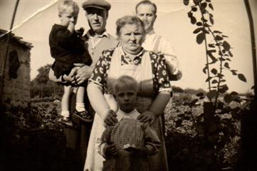 Berta avec jean-Pierre et Jacques Lorand. À droite Gustave Evrard et Maria Dessy