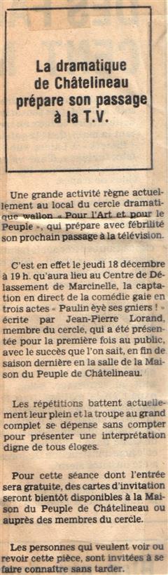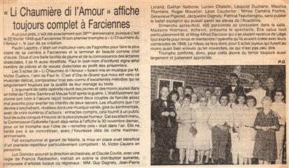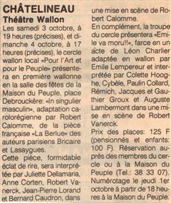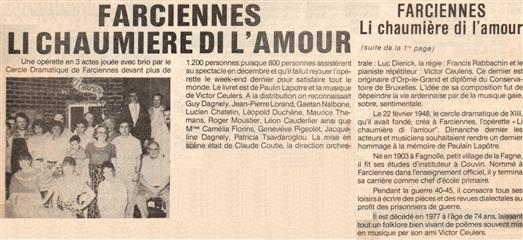 Mon rêve étant ado était d'être un artiste, je suis allé au solfège j'ai appris le piano, le saxo, mais j'aurai voulu faire du cinéma du théâtre, les possibilités dans ce domaine à l'époque était mince en Belgique. Un jour un client monsieur Robert Vanerck pour ne pas le cité étant régisseur au cercle (Pour l'Art et pour le Peuple) de Châtelineau m'a proposé de rejoindre sa troupe de théâtre wallon, j'ai commencé à jouer dans quelques pièces et très vite j'ai commencé à écrire des pièces. La toute première (Paulin èyèt ses gniêrs) eu un tel succès que la RTBF en a fait une captation. Je dois remercier aussi monsieur Emile Lempereur qui m'encouragea dans mon désir d'écrire, et André Gevret réalisateur qui a cru en moi. Je vous propose ici la liste de mes pièces en français, en wallon carolo, en différent dialecte de nos régions, en néerlandais et anglais pour certaines. ( Attention, ils sont tous en version pdf )
