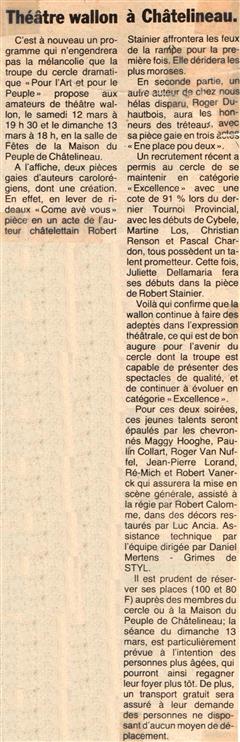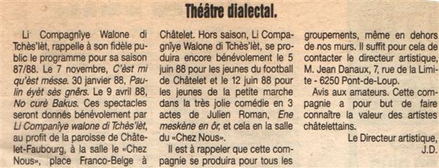 Mon rêve étant ado était d'être un artiste, je suis allé au solfège j'ai appris le piano, le saxo, mais j'aurai voulu faire du cinéma du théâtre, les possibilités dans ce domaine à l'époque était mince en Belgique. Un jour un client monsieur Robert Vanerck pour ne pas le cité étant régisseur au cercle (Pour l'Art et pour le Peuple) de Châtelineau m'a proposé de rejoindre sa troupe de théâtre wallon, j'ai commencé à jouer dans quelques pièces et très vite j'ai commencé à écrire des pièces. La toute première (Paulin èyèt ses gniêrs) eu un tel succès que la RTBF en a fait une captation. Je dois remercier aussi monsieur Emile Lempereur qui m'encouragea dans mon désir d'écrire, et André Gevret réalisateur qui a cru en moi. Je vous propose ici la liste de mes pièces en français, en wallon carolo, en différent dialecte de nos régions, en néerlandais et anglais pour certaines. ( Attention, ils sont tous en version pdf )